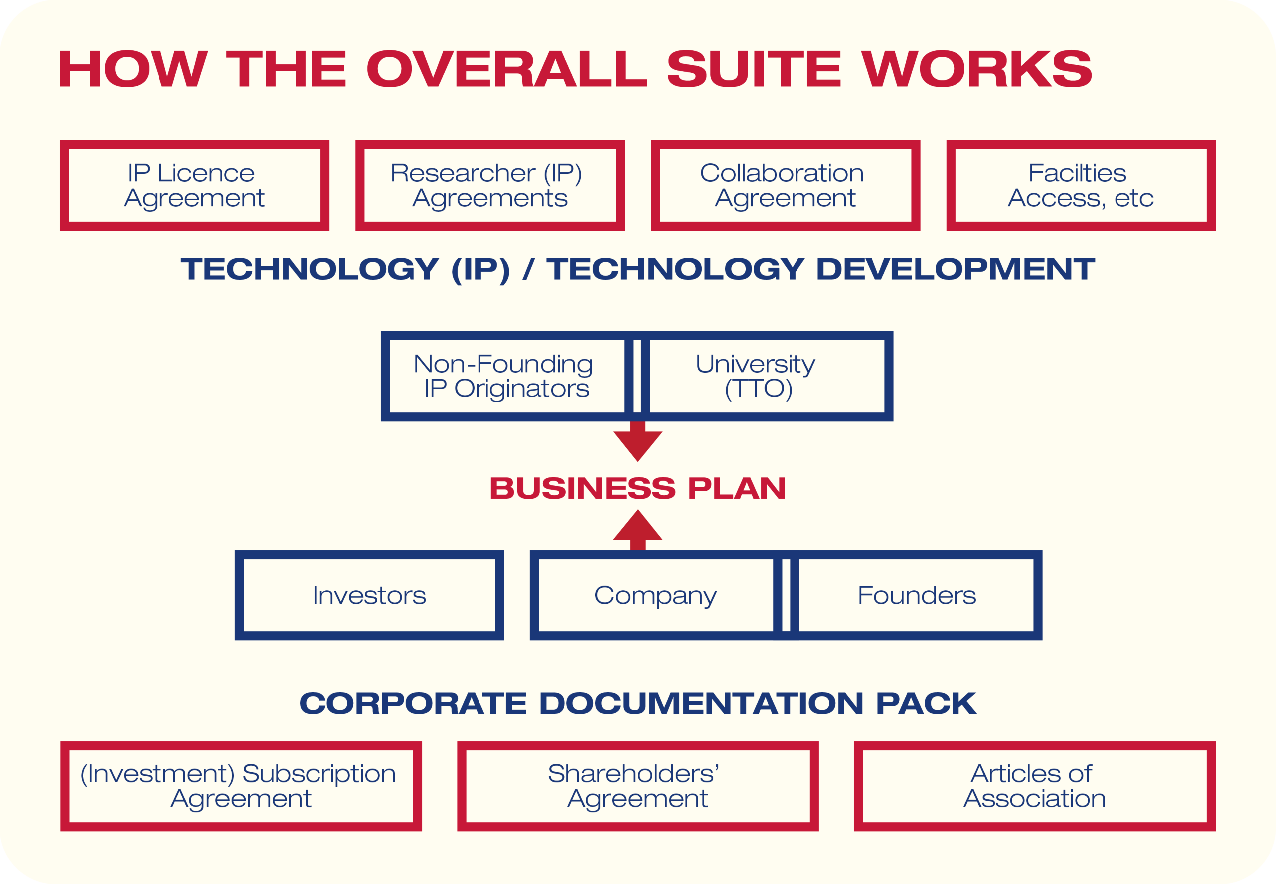 In summary form, there are two main themes covering the spin-out suite of legal agreements. The first is for the corporate documentation (Shareholders’ Agreement, Subscription Agreement and Articles of Association). These will principally cover how the Company operates and is governed, particularly decision making and the specification of rights in shares in light of the aims of the investment transaction, planned future Company development and growth through successful commercialisation and ultimately, having the potential for shareholders to receive potential gain from equity ownership.